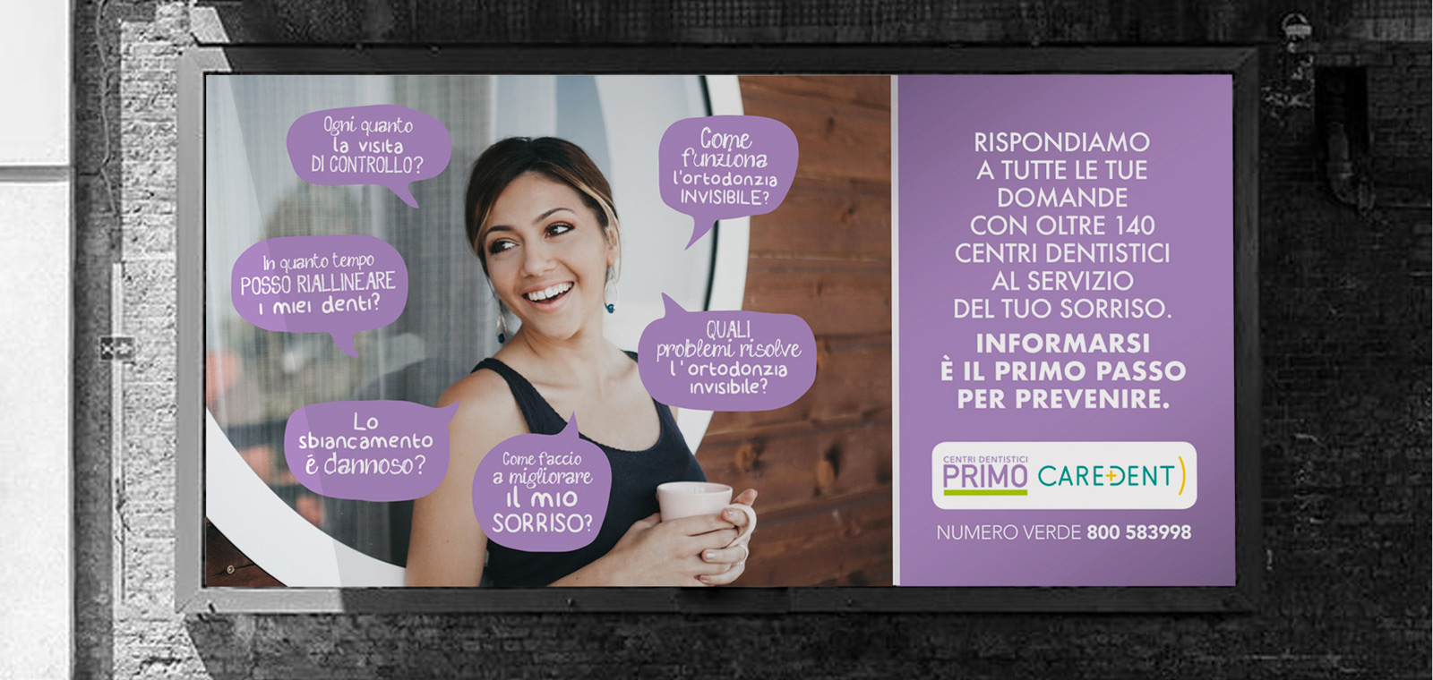 Primo e Caredent rispondono alle domande dei loro clienti con 140 centri al servizio del sorriso, noi rispondiamo alle richieste dei nostri con innovazione e creatività. Siamo partiti da un brief con tanti paletti, sia per tutti quei “non si può dire” che impone la nuova regolamentazione sulla comunicazione dentistica, sia per tutti quei “non si può fare” dettati invece dal lockdown.